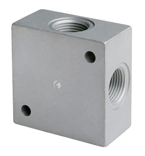Коллектор "крест" Camozzi. 4 отверстия с присоединением G1/2. Габариты 50х50х30 мм.