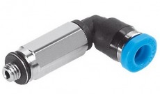 Угловой фитинг Festo с цанговым зажимом, удлиненный.Наружный диаметр шланга 6 мм, резьба наружная R1/8, серия "мини". 360° ориентируемое, наружная резьба с внешним шестигранником